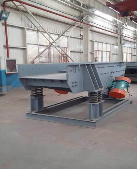 Ο εξοπλισμός χρησιμοποιεί δύο δονητικούς κινητήρες με τις ίδιες προδιαγραφές ως διπλές πηγές διέγερσης. Η περιστροφή υψηλής ταχύτητας των έκκεντρων μπλοκ και στα δύο άκρα των κινητήρων δημιουργεί μια συνεχή δύναμη διέγερσης, παρέχοντας σταθερή δόνηση στον εξοπλισμό. Η τάφρος τροφοδοσίας δονείται σε μια παλινδρομική γραμμική κίνηση κατά μήκος μιας κεκλιμένης κατεύθυνσης για να ολοκληρώσει τη λειτουργία μεταφοράς υλικού. Όταν το συστατικό επιτάχυνσης της δόνησης της τάφρου είναι μεγαλύτερο από το συστατικό της επιτάχυνσης της βαρύτητας στην κατεύθυνση κάθετη στην τάφρο, το υλικό στην τάφρο εκτινάσσεται προς τα πάνω, πηδώντας προς τα εμπρός κατά μήκος μιας παραβολικής τροχιάς. Με κάθε κύκλο δόνησης της τάφρου, το υλικό εκτινάσσεται προς τα εμπρός μία φορά. Μέσω συνεχούς κίνησης άλματος συγχρονισμένης με τη συχνότητα δόνησης της τάφρου, επιτυγχάνεται ομοιόμορφη και συνεχής τροφοδοσία υλικών.